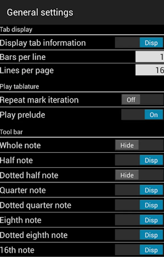 The number of lines shown to 1 screen and the number of measures of 1 line can be set.