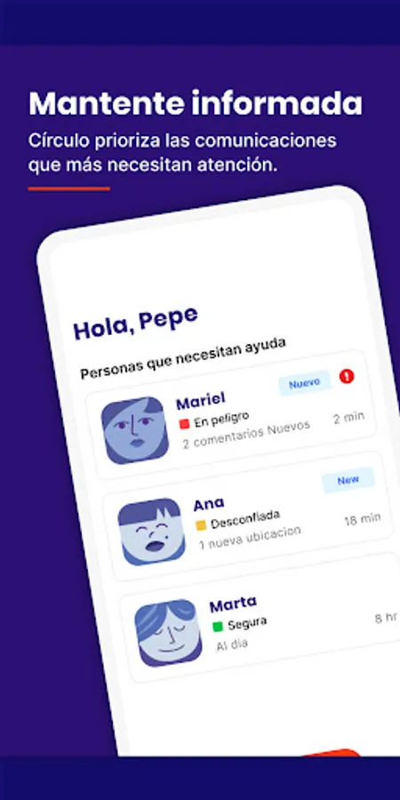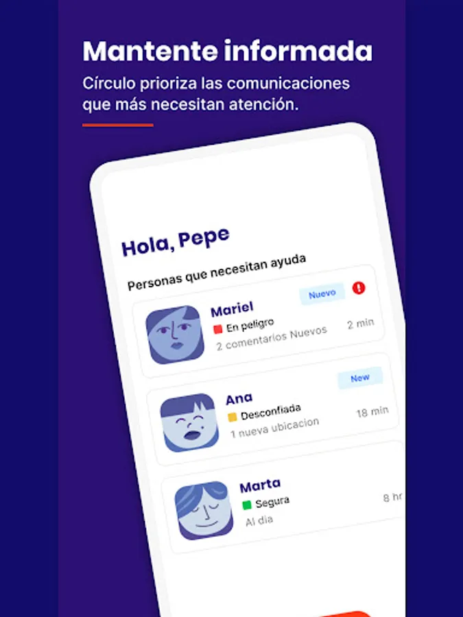 Círculo helps connect you to a reliable network of six peers. Establish protocols, send alerts and keep those in your circle informed.
