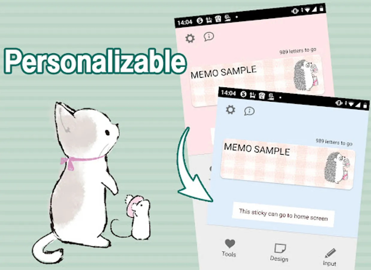 This application is a widget for your home screen and you can enjoy personalizing it. Keep pressing the home screen till an additional menu of widgets appears. Pick out “Sticky Note ANIMAL LIFE” from a list of widgets.