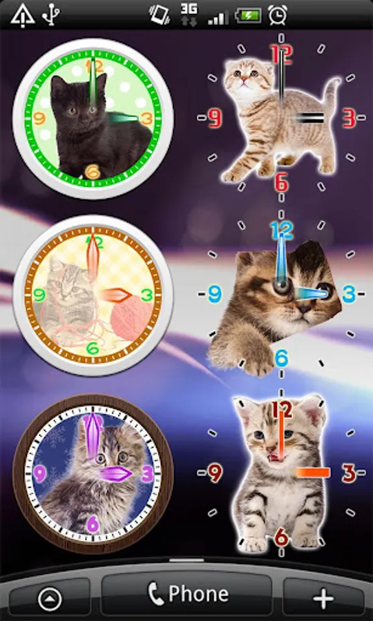 This is a simple analog-clocks widget of cats. Please enjoy personalizing your home screen. Please tap on the widget to change a clock design.