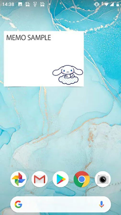 This application is a widget for your home screen and you can enjoy personalizing it. Keep pressing the home screen till an additional menu of widgets appears. Pick out “Notepad Cinnamoroll” from a list of widgets.
