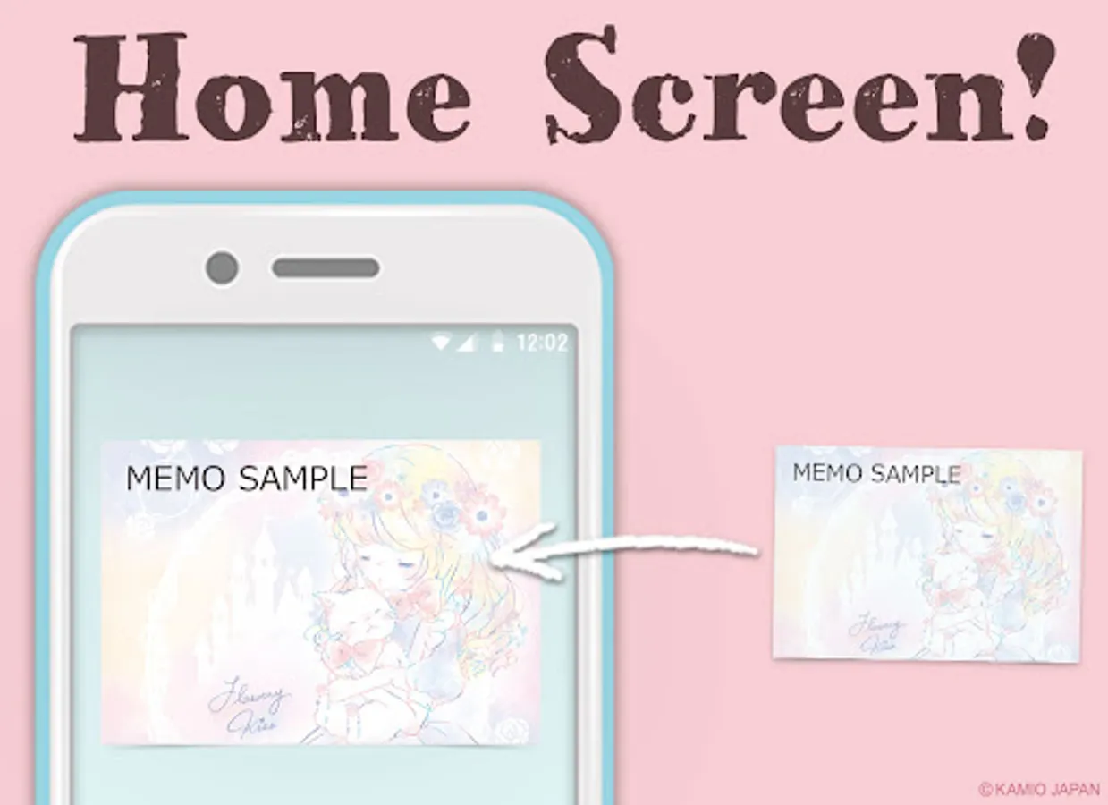 This application is a widget for your home screen and you can enjoy personalizing it. Keep pressing the home screen till an additional menu of widgets appears. Pick out “Sticky Note Flowery Kiss” from a list of widgets.