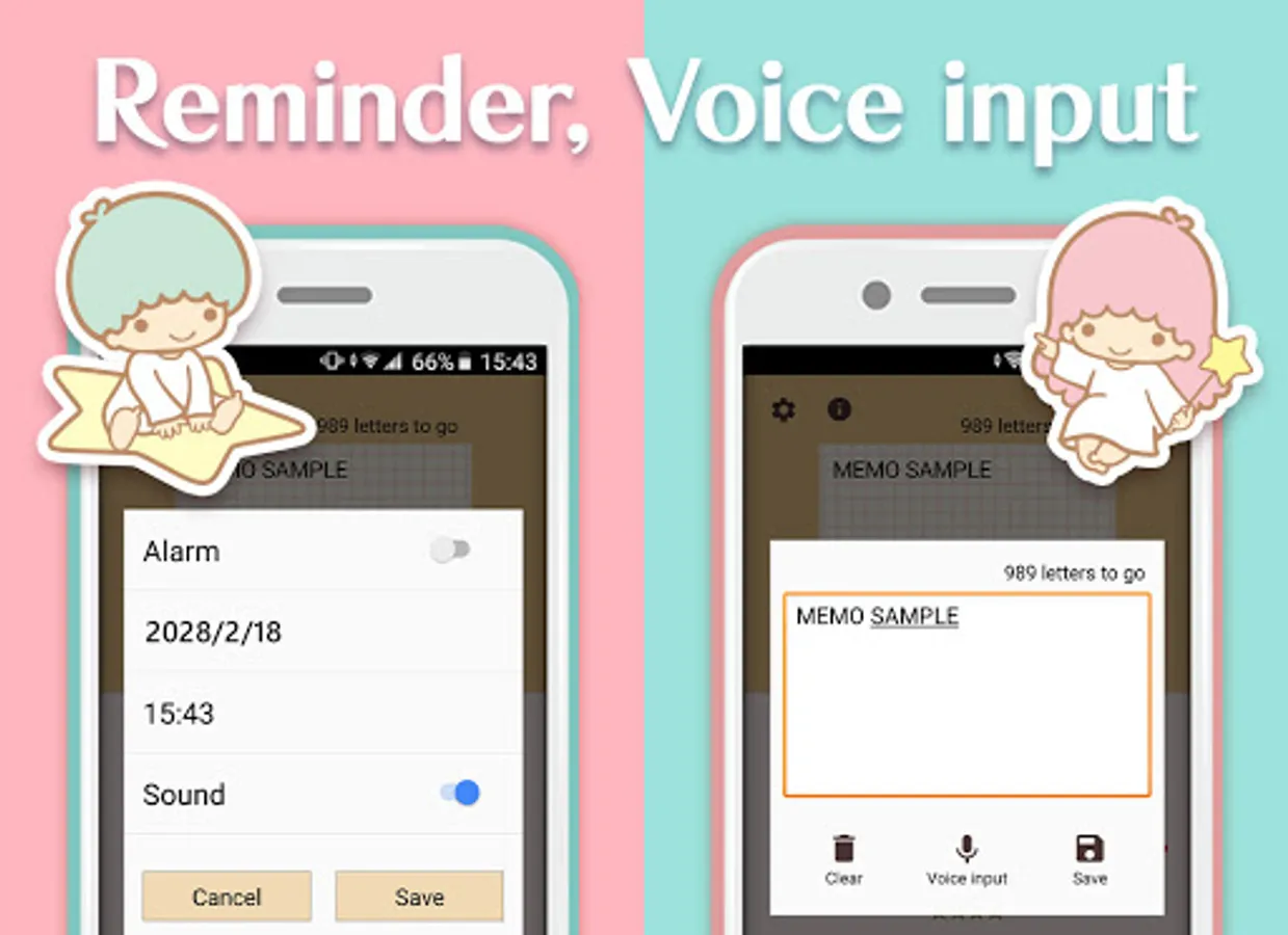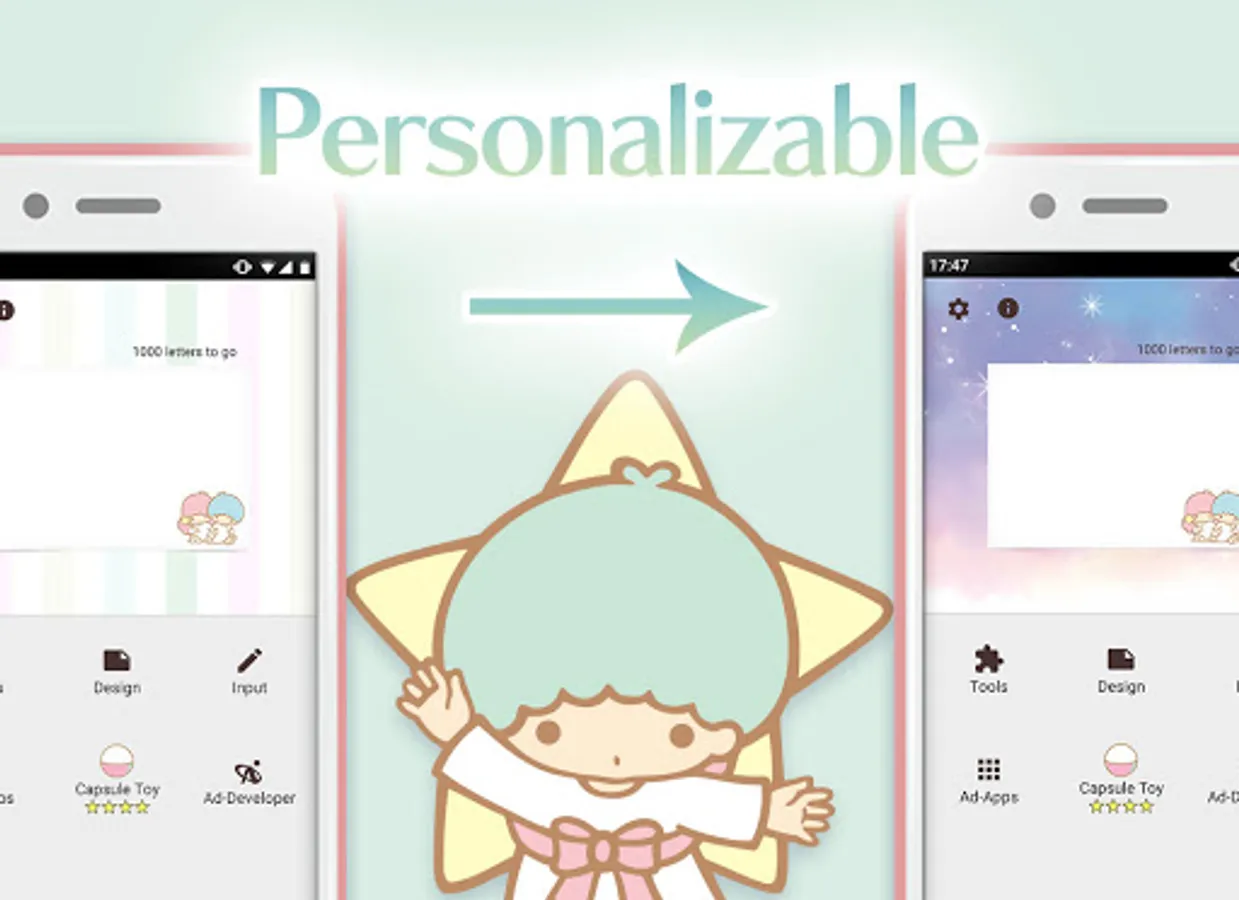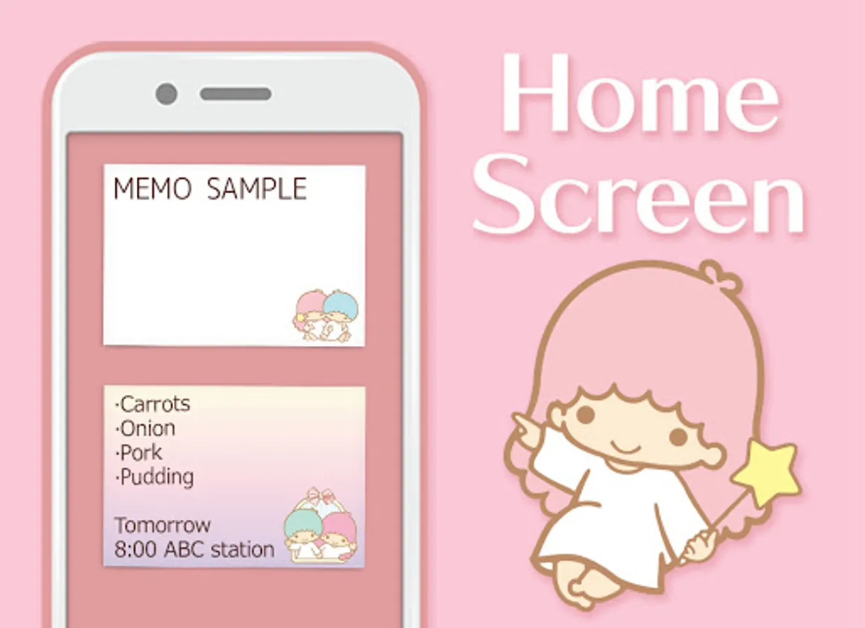 This application is a widget for your home screen and you can enjoy personalizing it. Keep pressing the home screen till an additional menu of widgets appears. Pick out “Notepad Little Twin Stars” from a list of widgets.