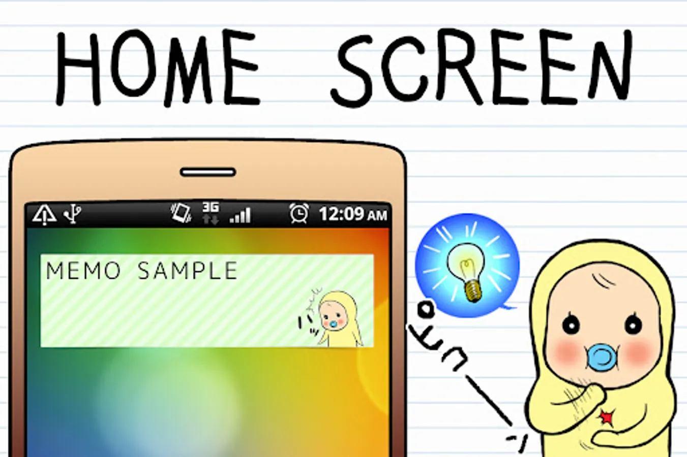 This application is a widget for your home screen and you can enjoy personalizing it. Keep pressing the home screen till an additional menu of widgets appears. Pick out “Sticky Note MEMETAN” from a list of widgets.
