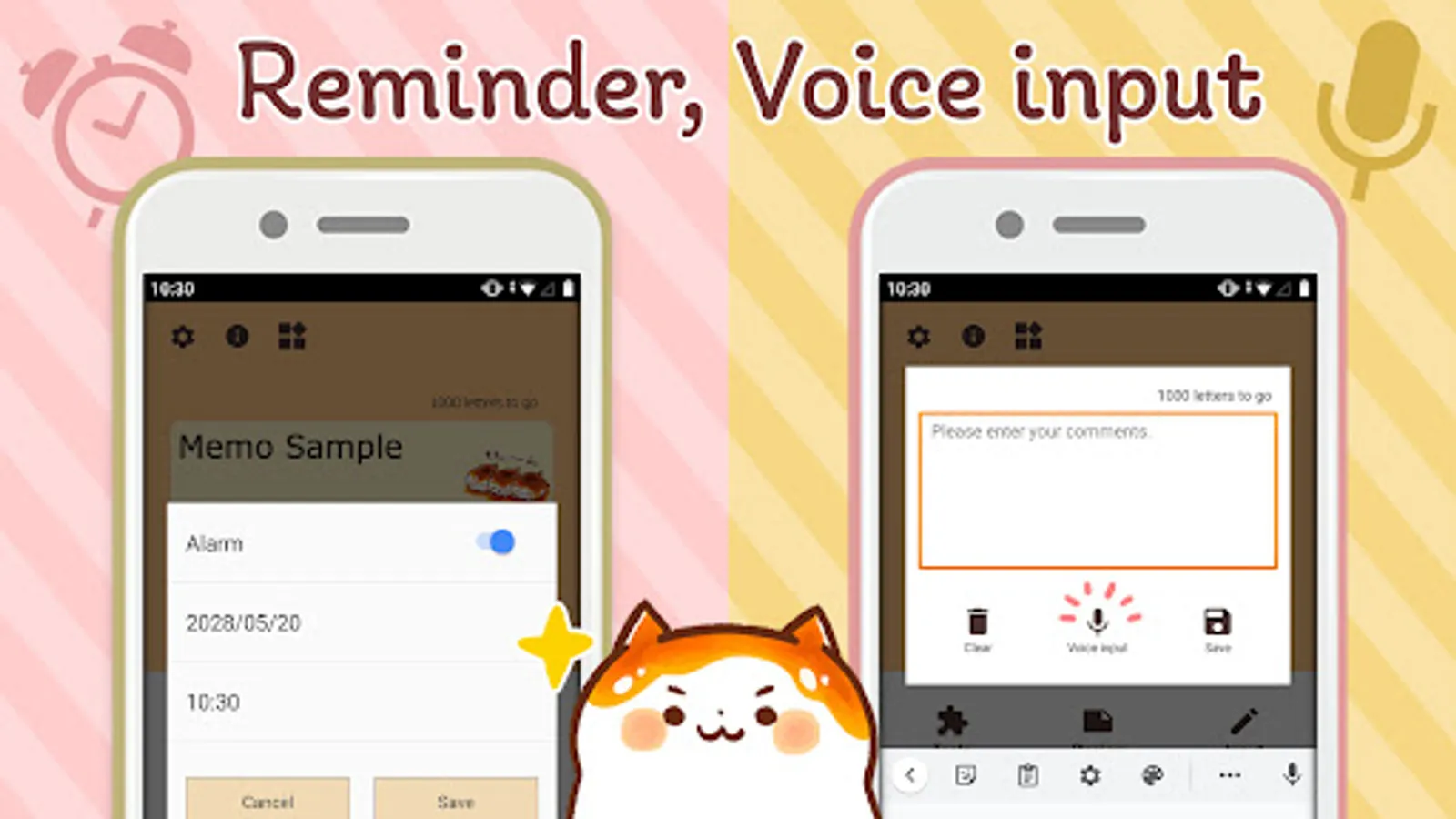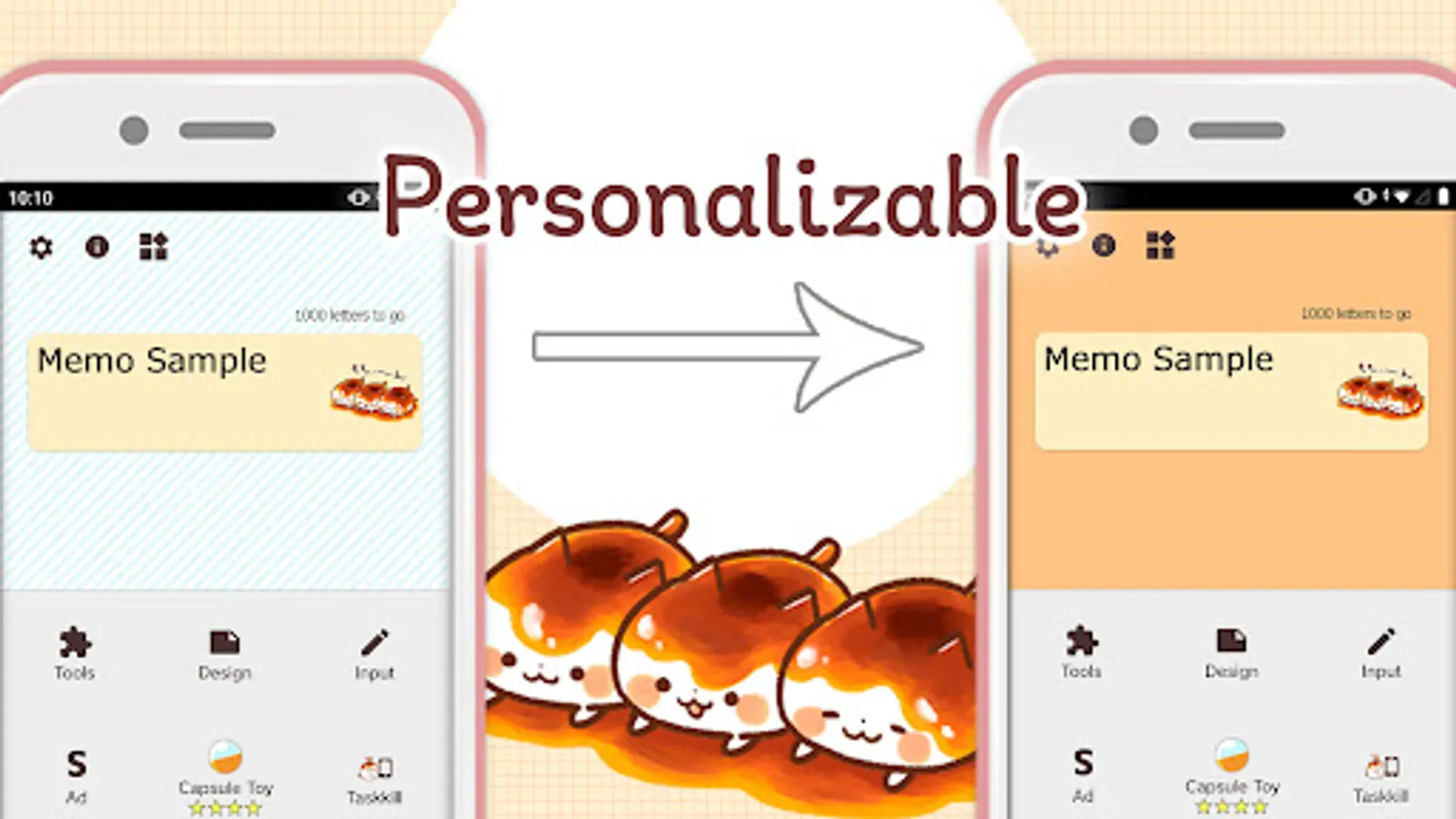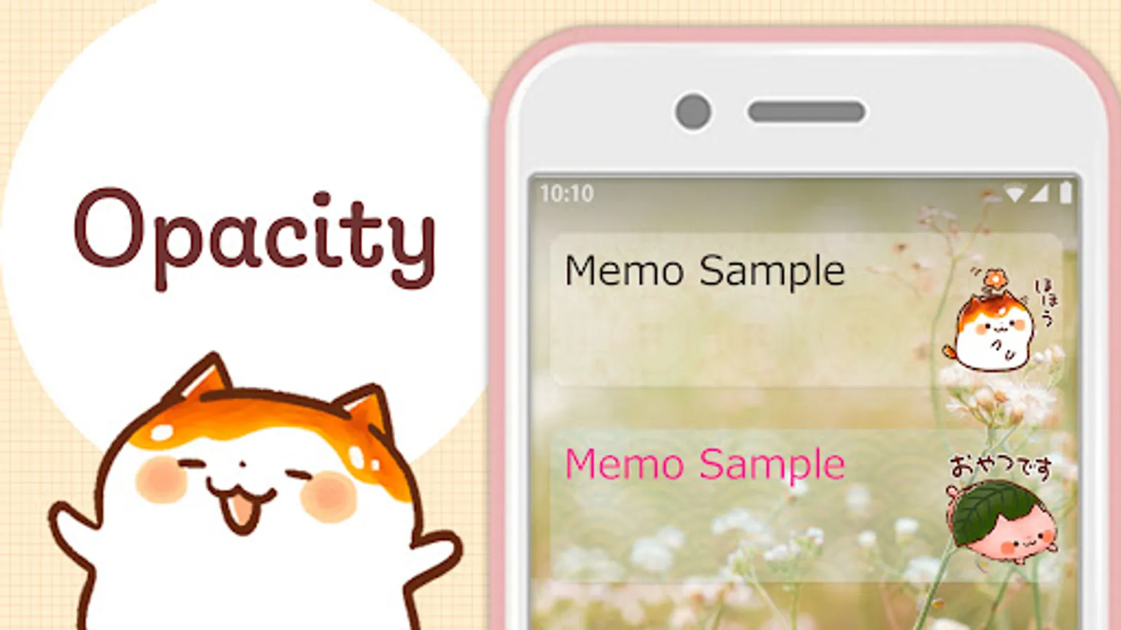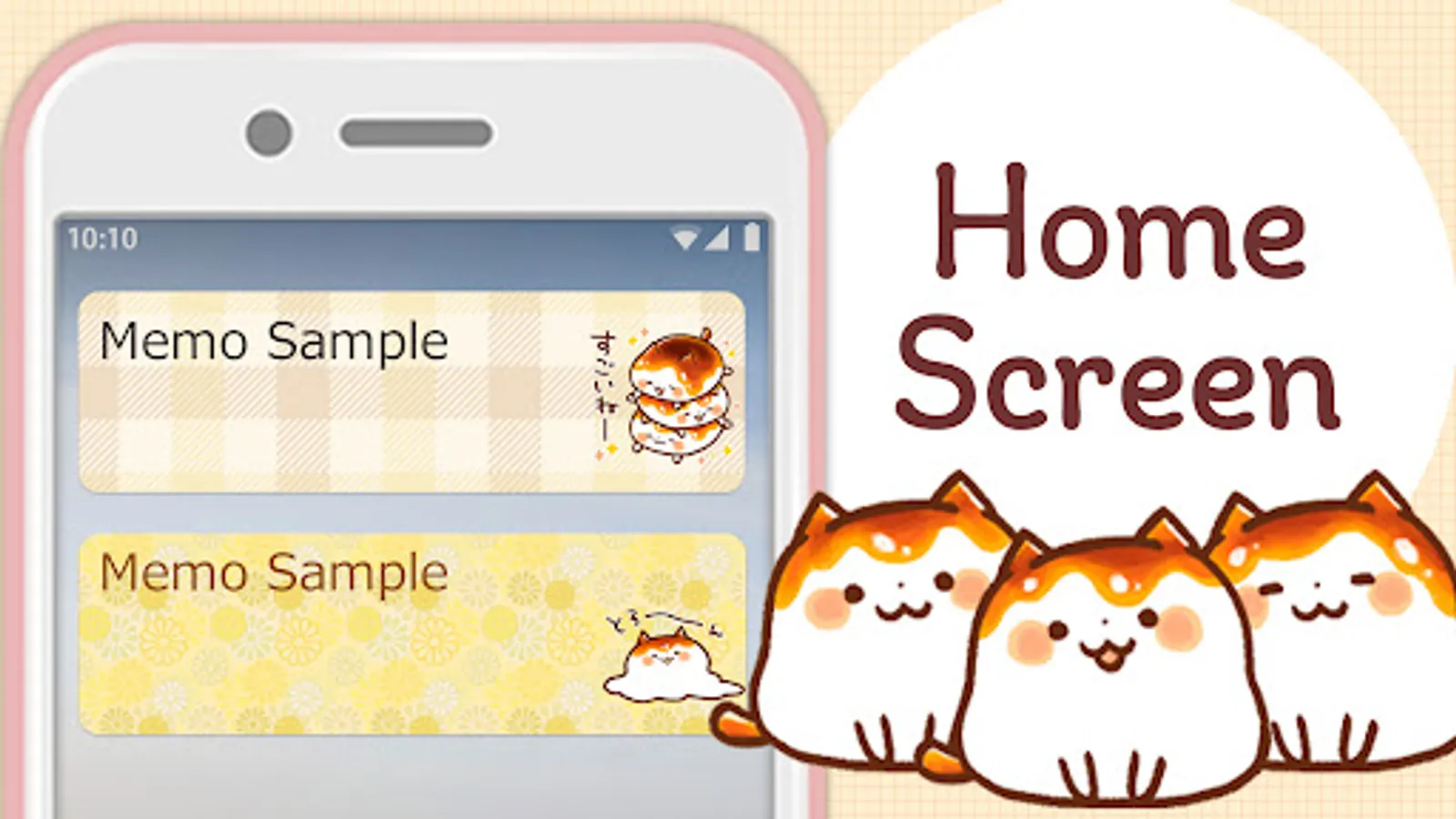 This application is a widget for your home screen and you can enjoy personalizing it. Keep pressing the home screen till an additional menu of widgets appears. Pick out “Sticky Note Mitarashi Nyanko” from a list of widgets.