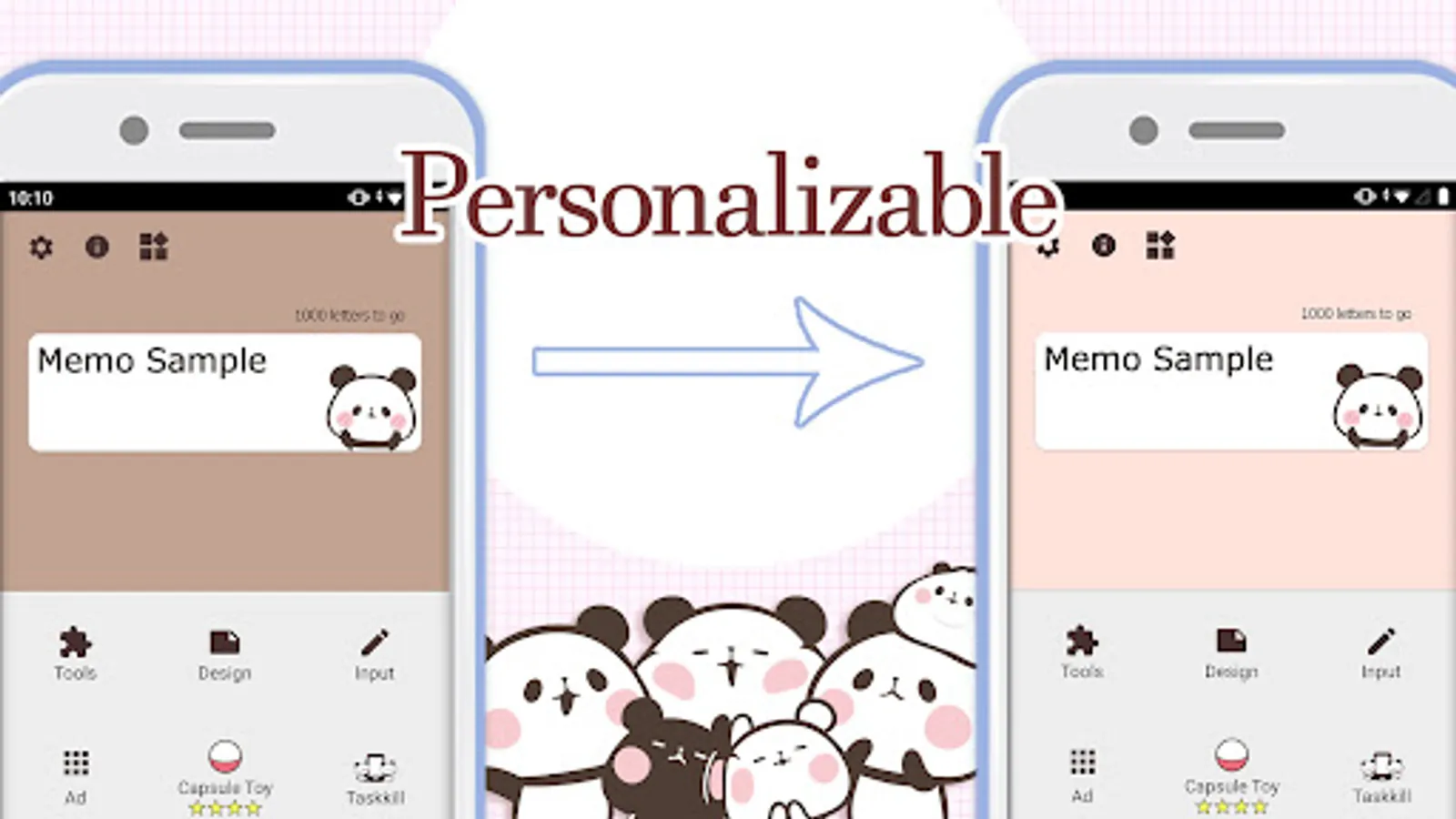 This application is a widget for your home screen and you can enjoy personalizing it. Keep pressing the home screen till an additional menu of widgets appears. Pick out “Sticky Note MOCHI MOCHI PANDA” from a list of widgets.