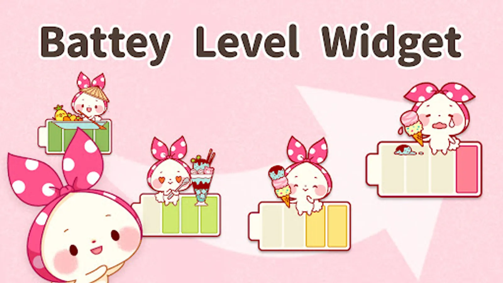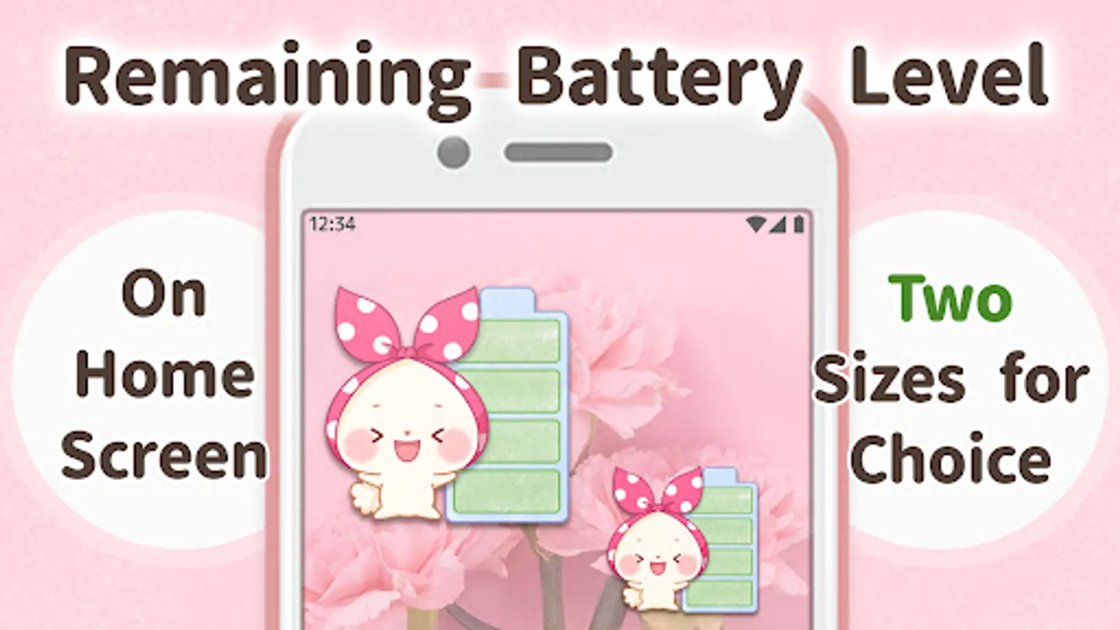 Please enjoy personalizing your home screen with these battery widgets. Please tap on the widget to change a battery design. You’ll find it a tool with full of entertainment. Keep pressing the home screen till an additional menu of widgets appears. Pick out “Mochizukin-chan Widget” from a list of widgets.