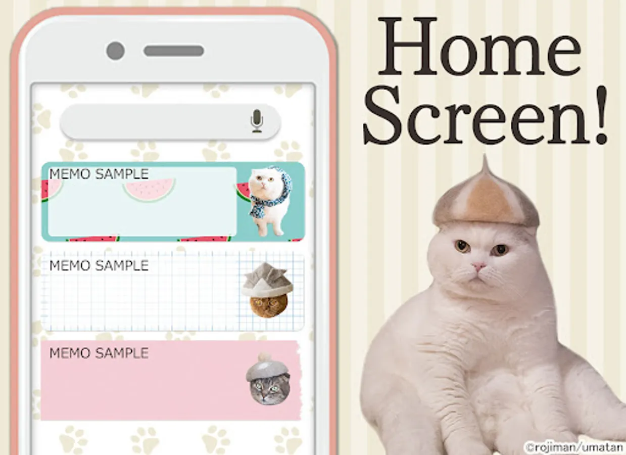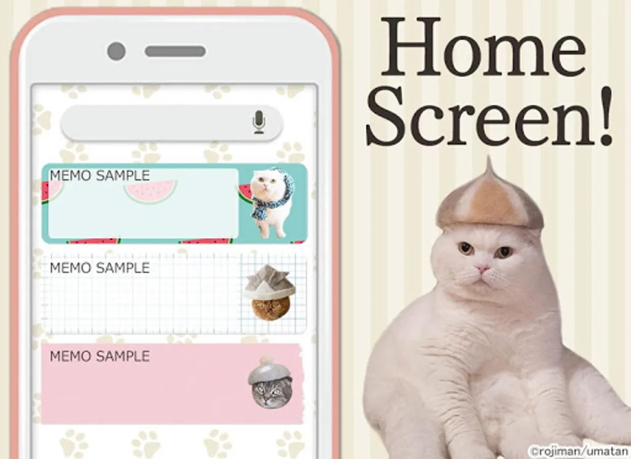 This application is a widget for your home screen and you can enjoy personalizing it. Keep pressing the home screen till an additional menu of widgets appears. Pick out “Sticky Note Cats' Hair Hats” from a list of widgets.