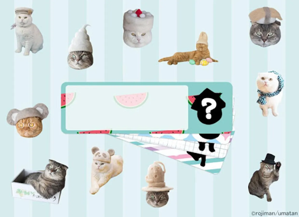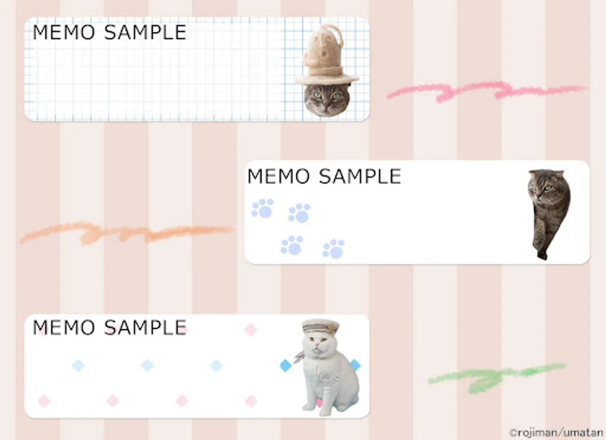 This is a memo pad widget of "cats wearing hats made of their own hair".
