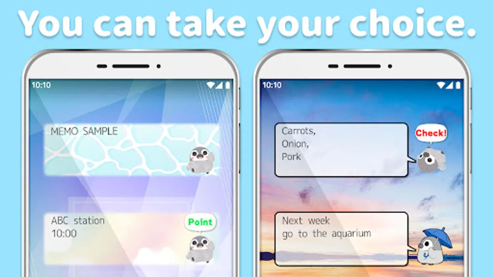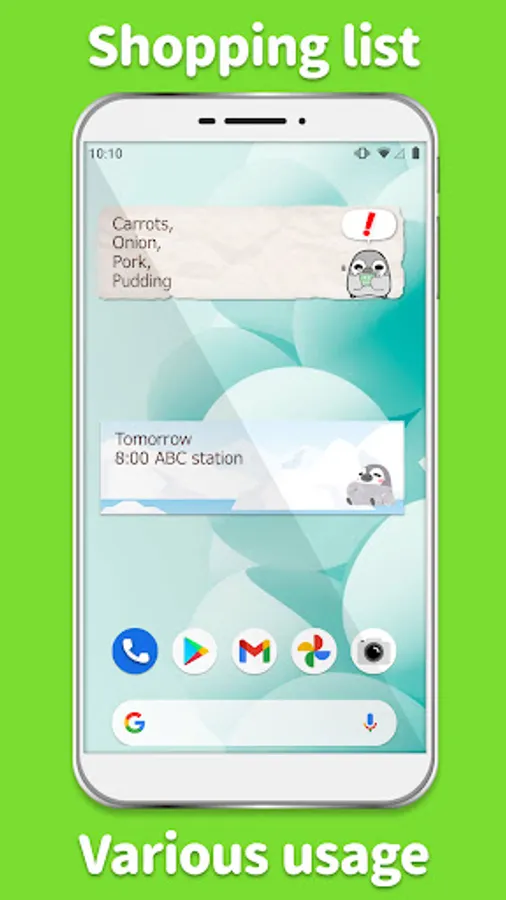 This application is a widget for your home screen and you can enjoy personalizing it. Keep pressing the home screen till an additional menu of widgets appears. Pick out “Sticky Note Pesoguin” from a list of widgets.