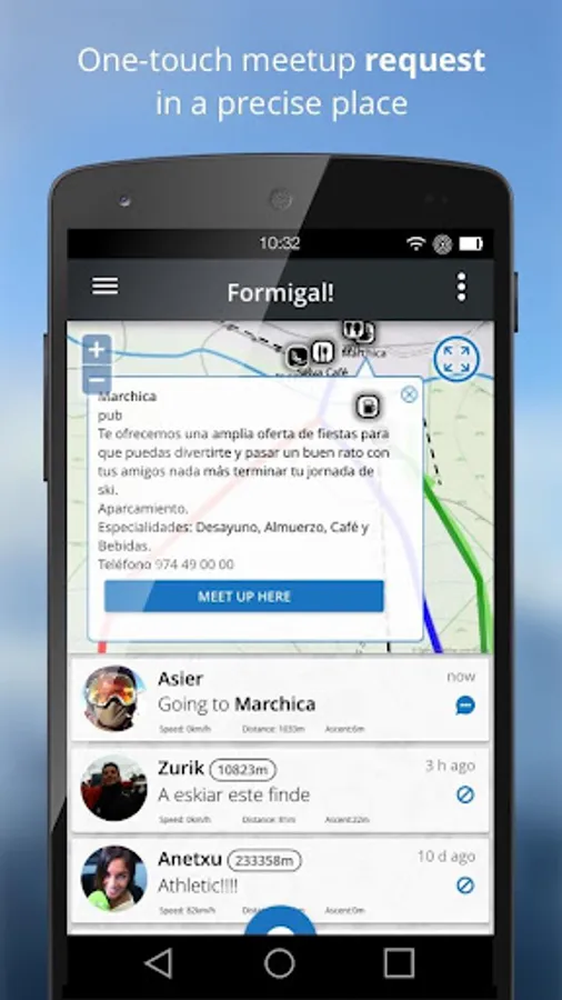 - Propose with just one touch a meeting place for lunch or rest.