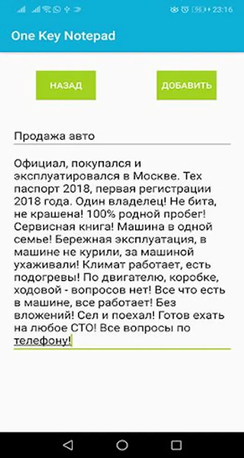 This simple app created for those who very often copy and paste texts for different purposes. To get started, you just need to add frequently copied text to the list, and then just click on it to copy. You can forget about manual selection and copying from different files, from now on you can save a lot of time on copying. The app supports emoji emoticons.