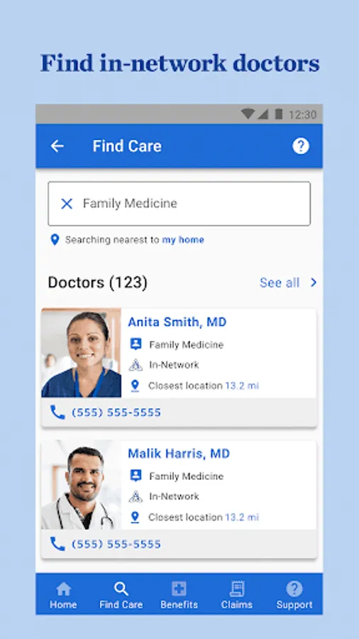 • Find in-network doctors close to wherever you are