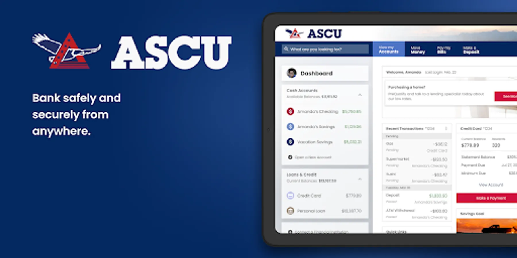 ASCU Mobile Banking is your personal financial advocate that gives you the ability to aggregate all of your financial accounts, including accounts from other banks and credit unions, into a single view. It’s fast, secure and makes life easier by empowering you with the tools you need to manage your finances.