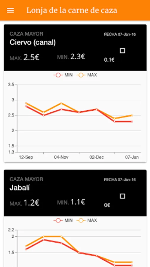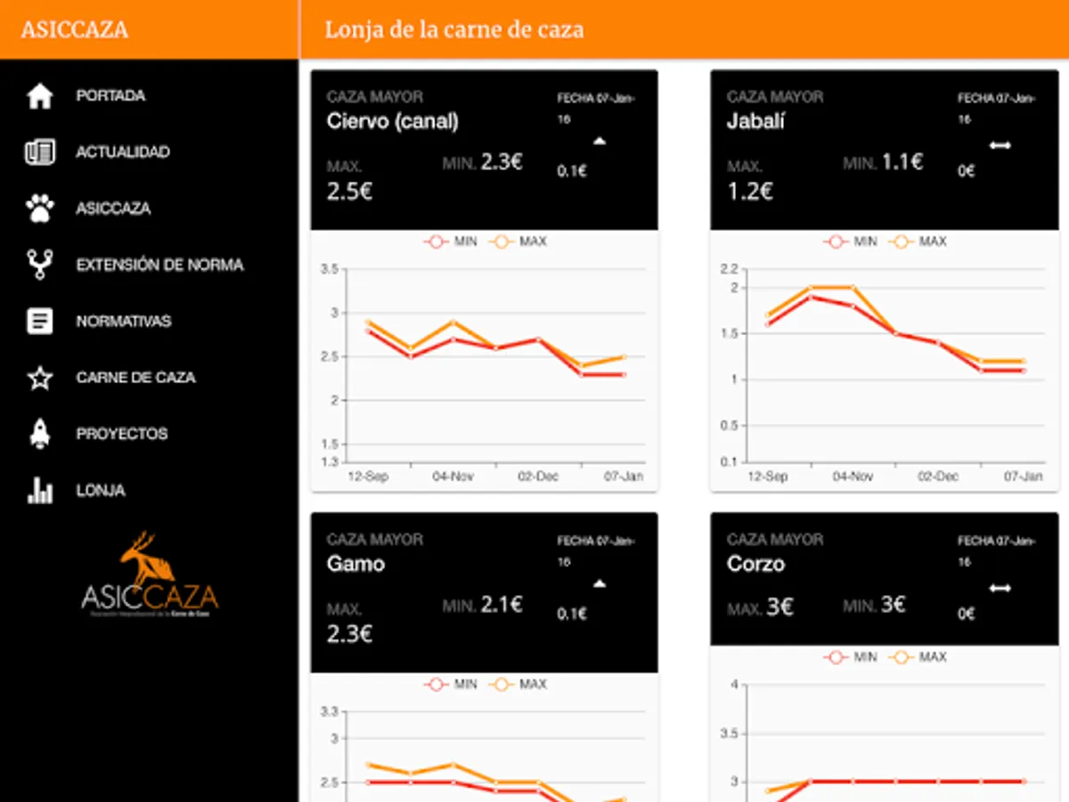 - With this application you can check the prices of the game meat market and see the evolution of prices over time.