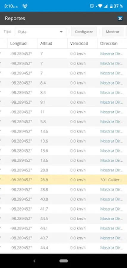 »Aliases, Time, Latitude-Longitude, Speed Km / h, Direction
