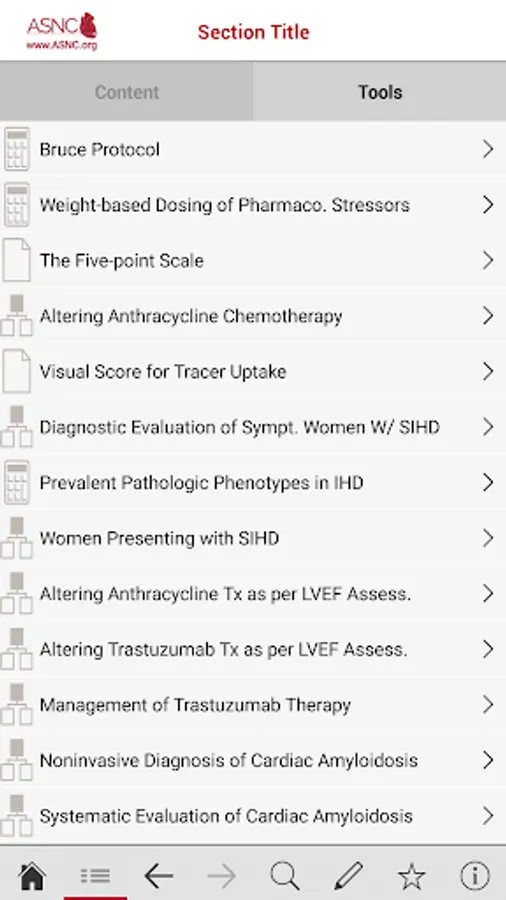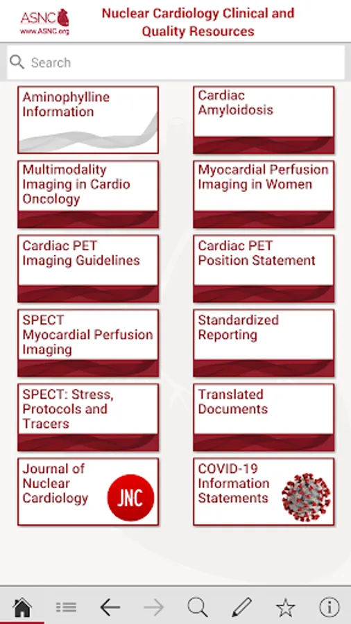 The ASNC Nuclear Cardiology Clinical and Quality Resources App is providing content for informational and educational purposes only. The recommendations contained in the App should not be interpreted as setting a standard of care, or be deemed inclusive of all proper methods of care nor exclusive of other methods of care reasonably directed to obtaining the same results. The App and its conclusions and recommendations reflect the best available information at the time the App was prepared. The American Society of Nuclear Cardiology does not warrant the accuracy or completeness of the ASNC Nuclear Cardiology Clinical and Quality Resources App.