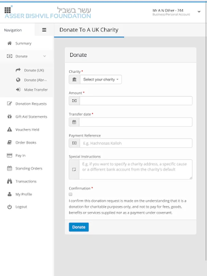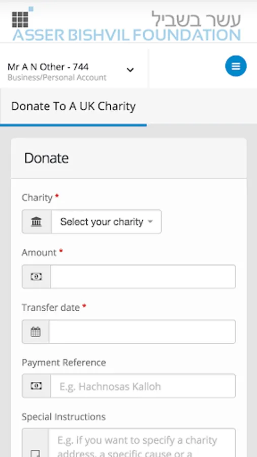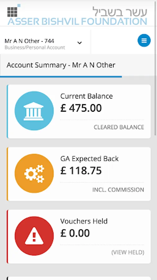 This app enables you to manage all aspects of your Asser Bishvil charity account on your device, check your balance, make donations etc.