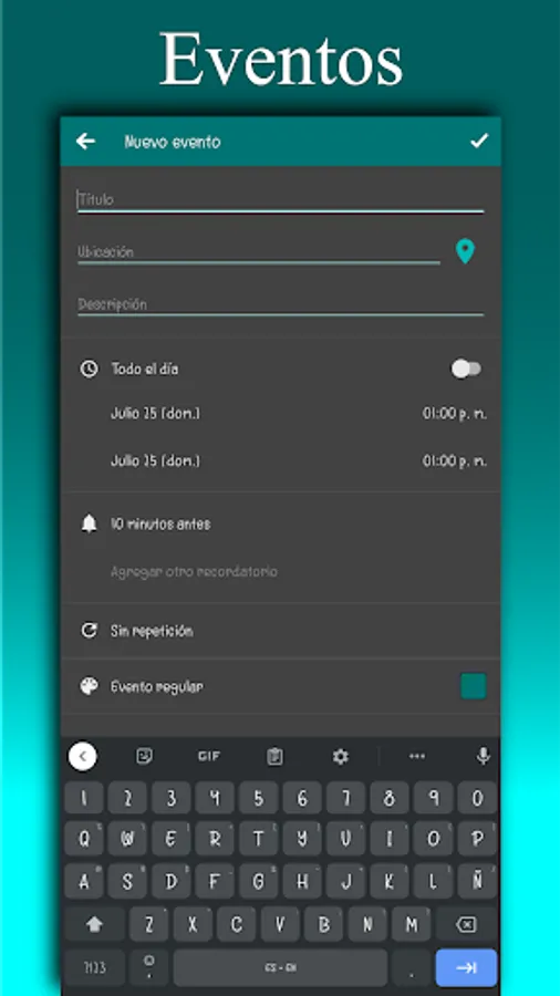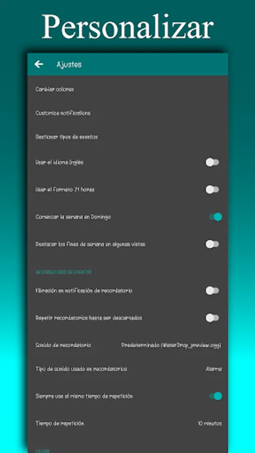 ✔️ fully customizable events: start time, duration, reminders, etc.