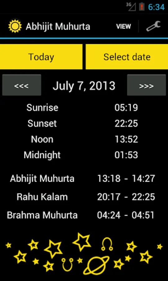 - Calculating time of sunrise, sunset and astrological noon, Abhijit Muhurta and Rahu Kalam for any given location and date.