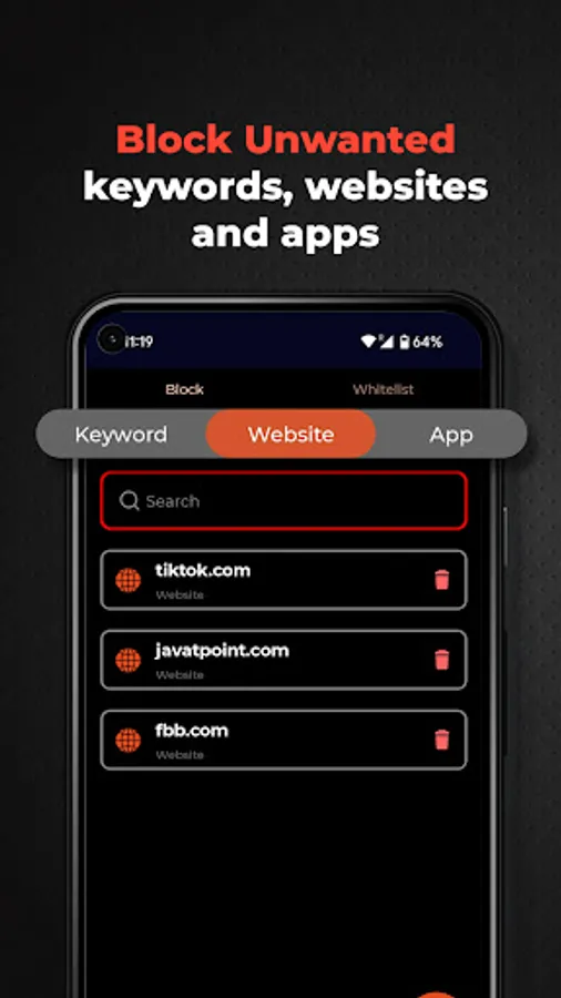 3. Keyword blocking: Apart from the harmful and distracting content, you can input your particular set of websites and keywords to our list. Any websites or apps added by you will not be accessible.