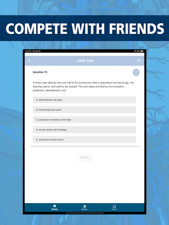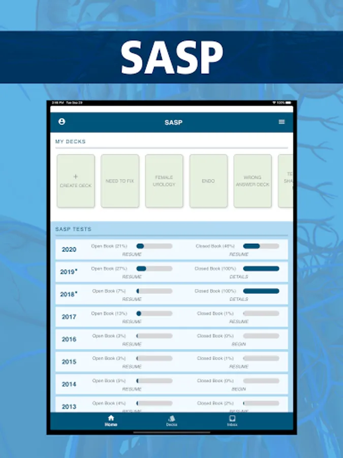 For over 40 years, the AUA's Self-Assessment Study Program (SASP) has been a leading educational resource for urologists-in-training and practicing urologists. Developed each year, the SASP is a 150-question, multiple-choice practice examination that addresses the core curriculum of medical knowledge and latest advances in patient care. The SASP may be taken open or closed book, and provides correct answers with detailed answer rationales, and scientific references.