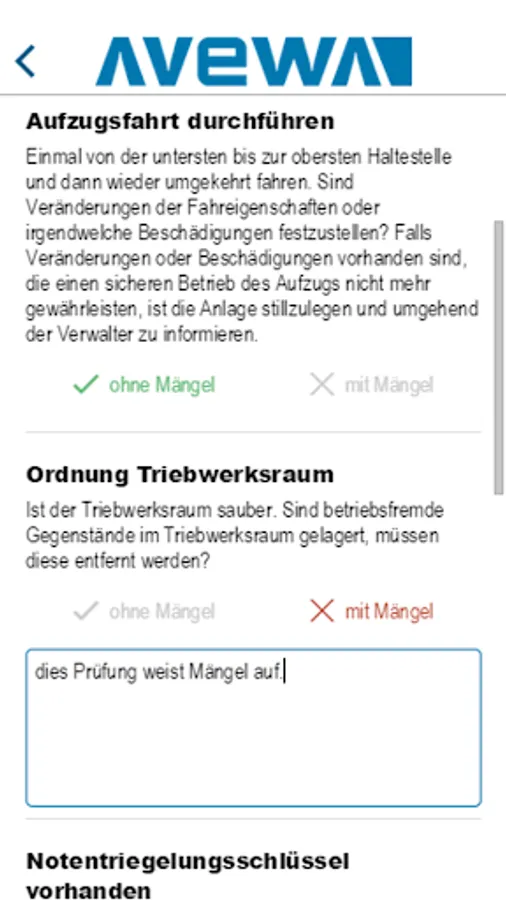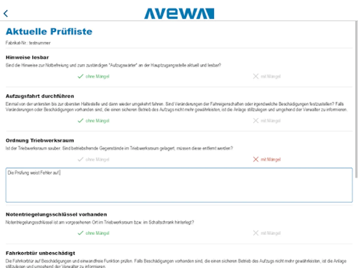 Lift attendant can perform this application, the ongoing monitoring of elevators and transfer the results directly into the Avewa system.