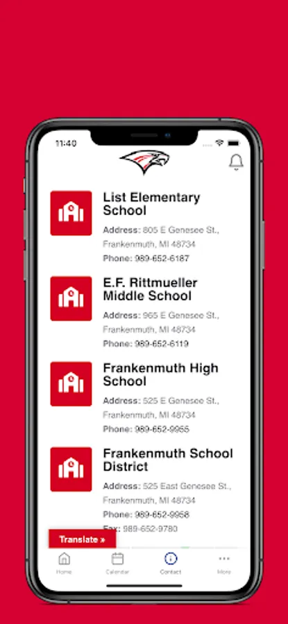 Stay in the loop with the Fmuth Eagles mobile app. It's easy to click and scroll through the daily calendar, school day schedule, receive special alerts, share school news, see menus, and access contact information. Go Eagles!
