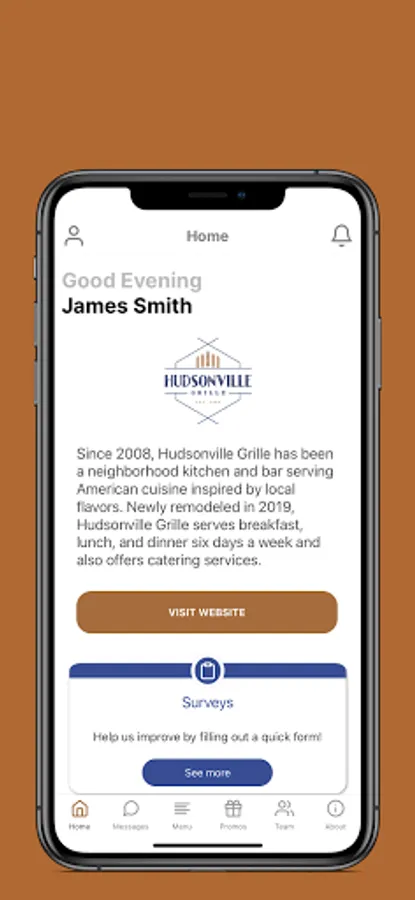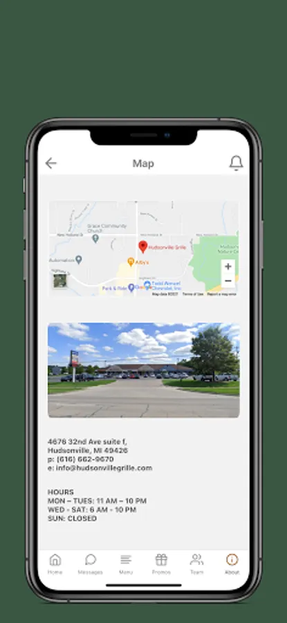 Welcome to Hudsonville Grille! We have real-time messaging, company posts, and even our menu!