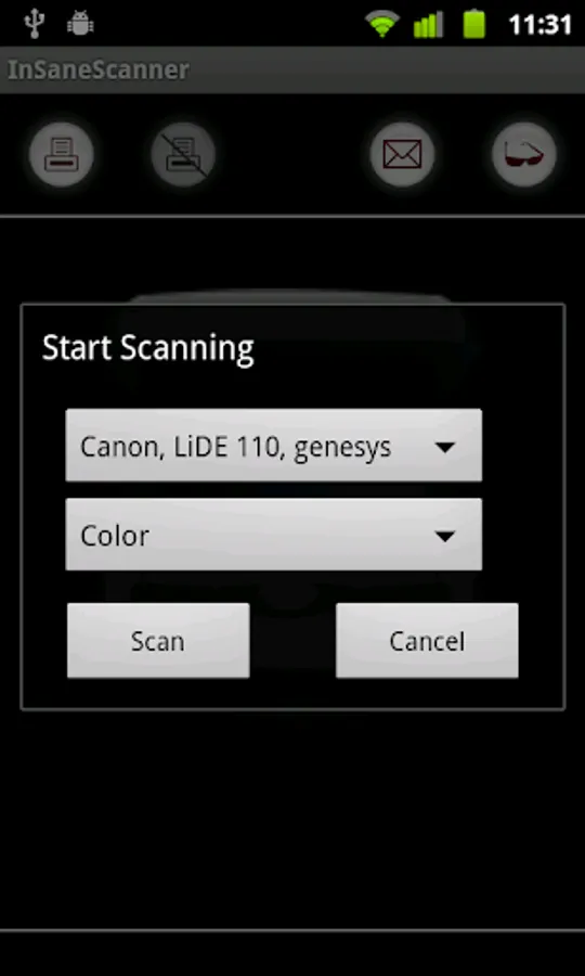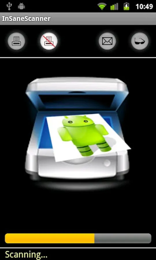 Scan from flatbed scanner directly to your Android device. InSaneScanner is a frontend for SANE - Scanner Access Now Easy (see: http://www.sane-project.org). Note: your scanner need not be wireless, but needs to be configured with SANE backend. Once scanned, the image can be e-mailed or seen in Android graphics viewer and saved. Support for most USB flatbed and all-in-one printer/scanners by HP, Canon, Epson, Brother etc. You can even scan over the Internet if your server is configured this way.