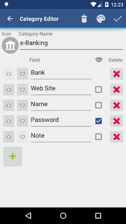 • All data is encrypted, including Entry names, Category definitions and the data itself. Even the choice of Favorite Category is encrypted.