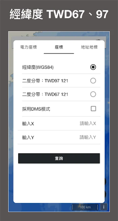 4. Latitude and longitude, TWD97 two-degree zone, TWD67 two-degree zone coordinate positioning