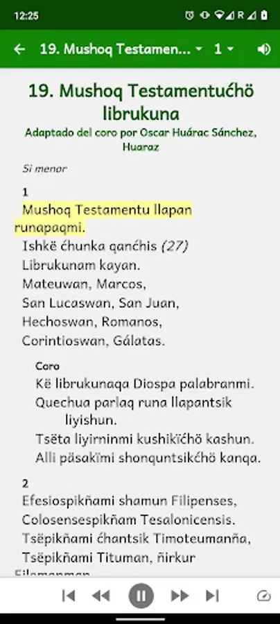 This resource is a package of hymns of adoration and praise to God and some school songs. All the songs in this volume have been adapted and sung by Corongo's Quechua translators. It is everyone's wish that this resource inspire and reach all the Quechua-speaking people to worship the Lord with emotion and joy.