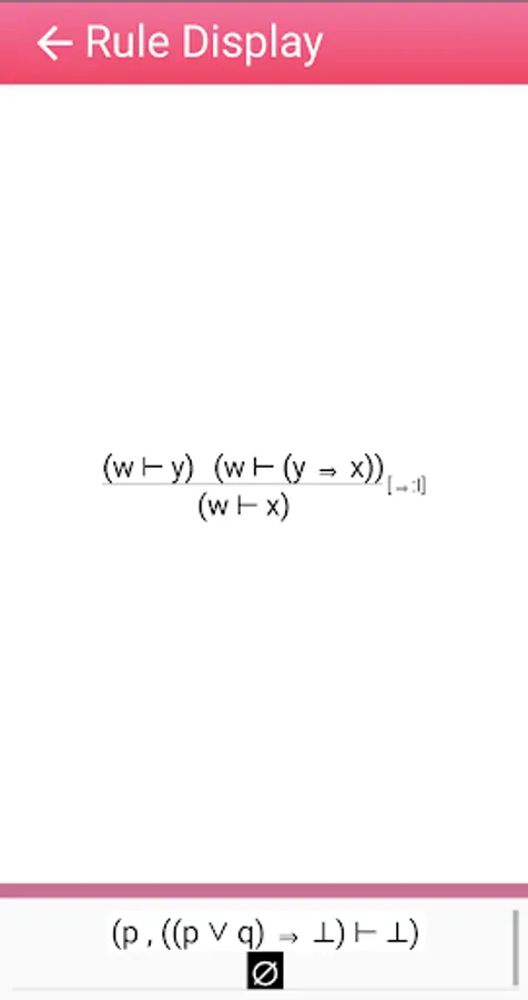 Rule: 2 ⊢(w,y) ⊢(w,⇒(y,x)) ⊢(w,x) [⇒:E]
