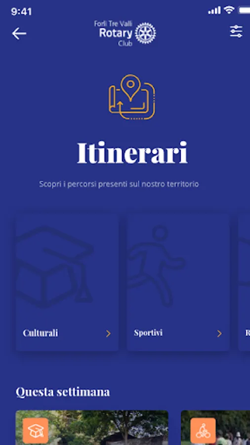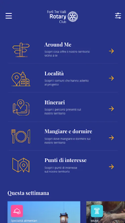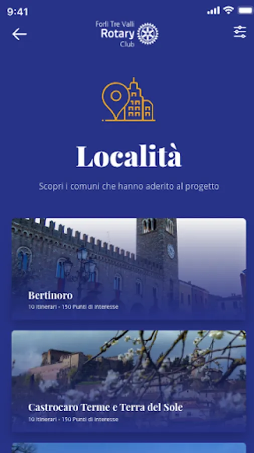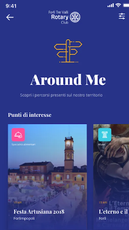 The Forlì Tre Valli App, downloadable for free, contains the material collected by the members of Rotary Forlì Tre Valli relating to clubs, entertainment, culture and curiosities of Forlì and its surroundings.