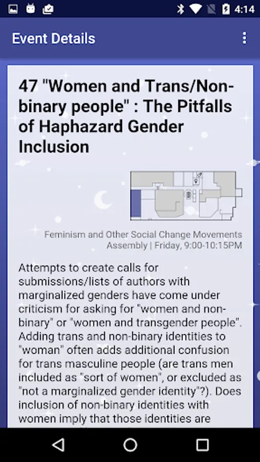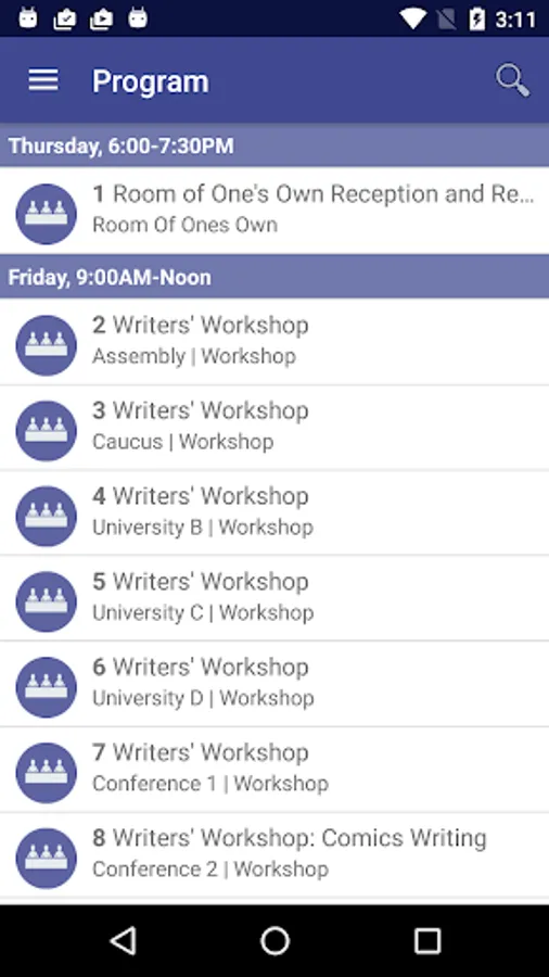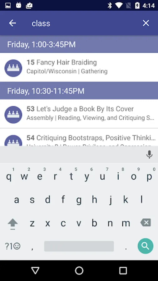 The WisSched app provides information about the events, panels and parties at WisCon in Madison, Wisconsin. Use it as a substitute for -- or supplemental to -- the Pocket Program Book!