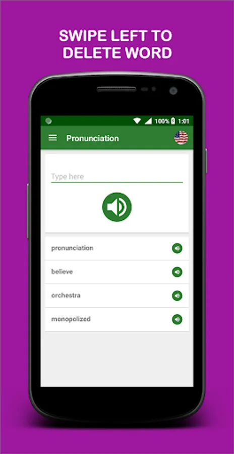 No more uncertainties about how to pronounce tricky English words. With our Pronunciation app, simply input the text, and you'll hear a clear pronunciation of the word. To refine your pronunciation, choose between American and British accents by tapping on the flag icon next to the input field.
