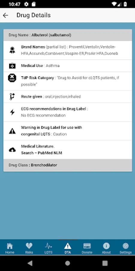 The App also provides background information on the categories of drug risk and explains the relationship between QT prolongation and TdP.
