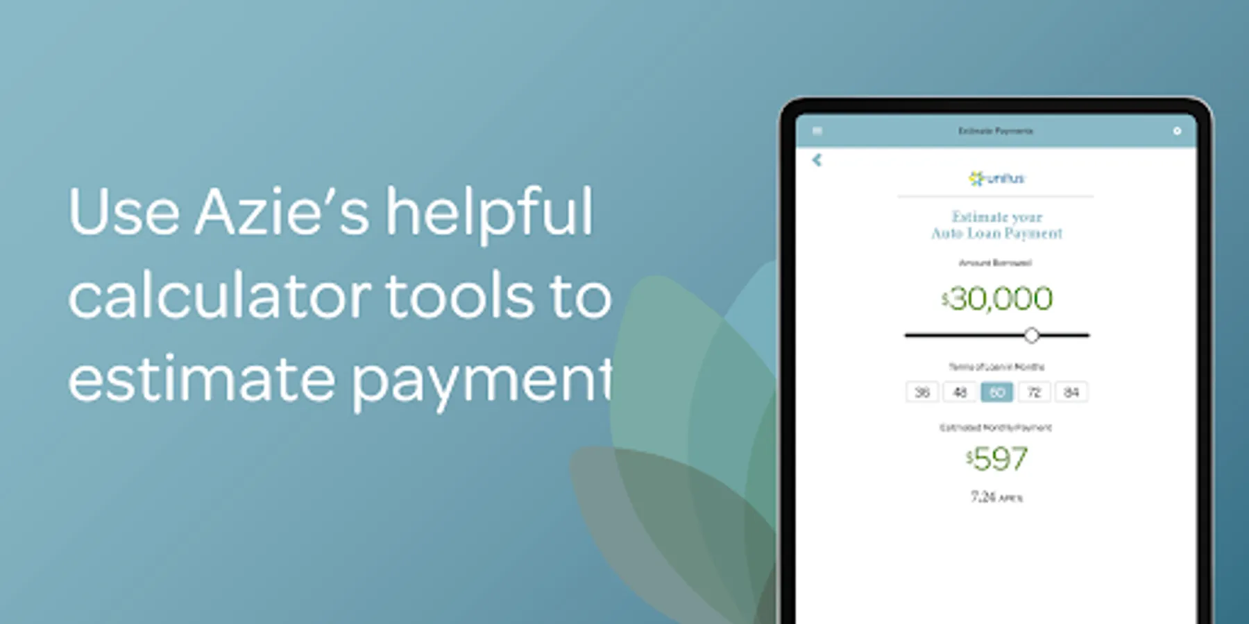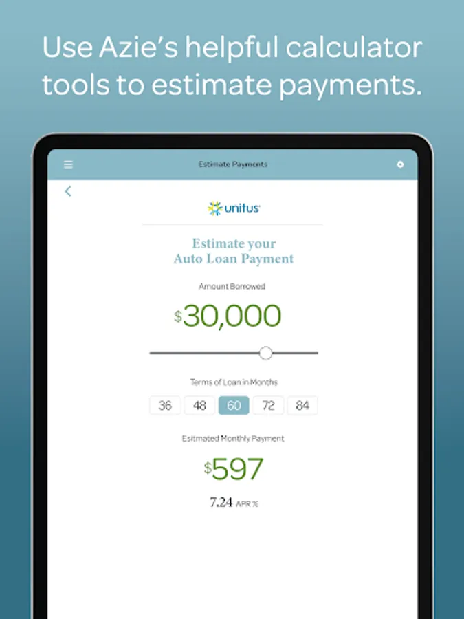 Use Azie’s helpful calculator tools to estimate payments on home, auto, and personal loans as well as credit card balances.