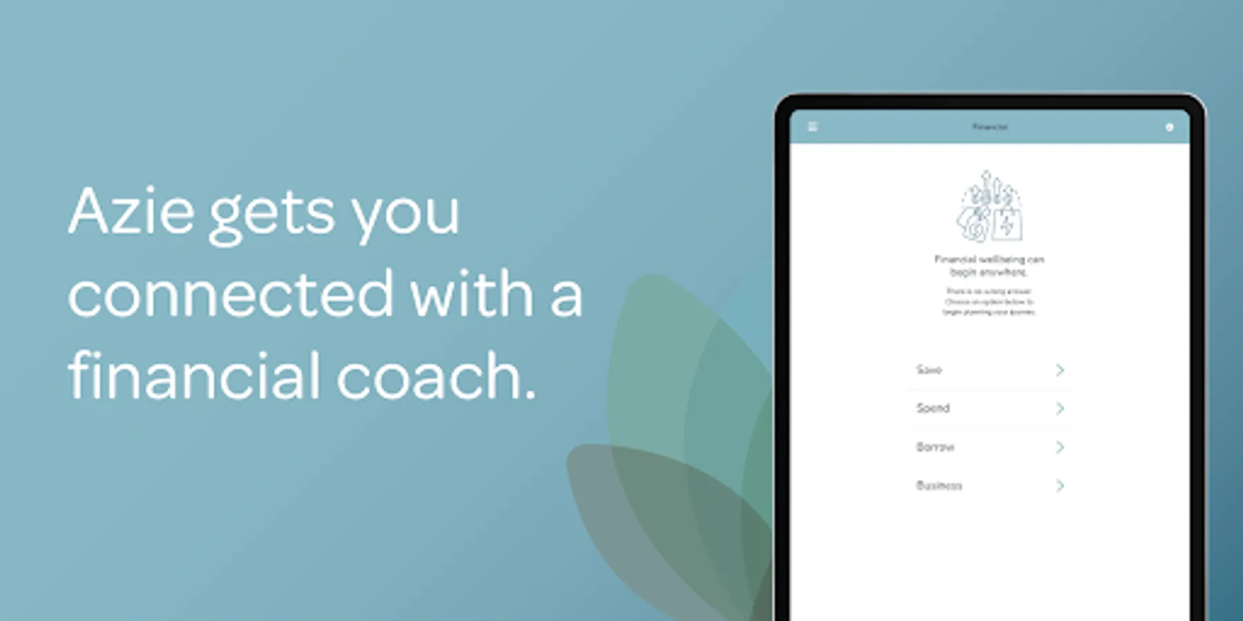 Azie gets you connected with a financial coach who is familiar with your needs to develop a personalized, achievable plan that works for you.