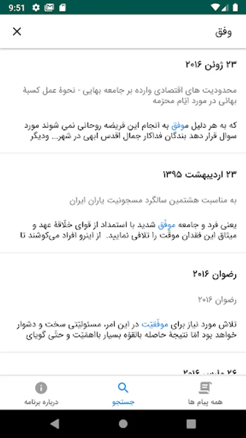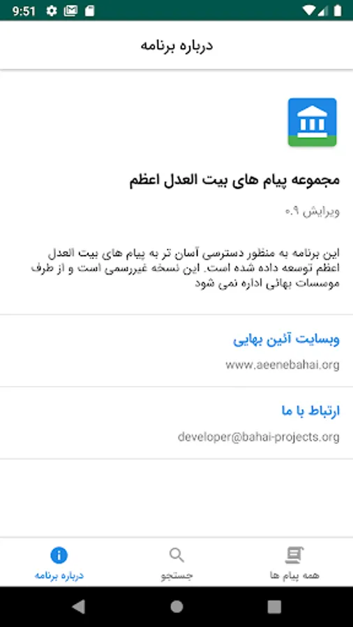 This app contains 1000 messages of the Great House of Justice that are arranged by subject and date.