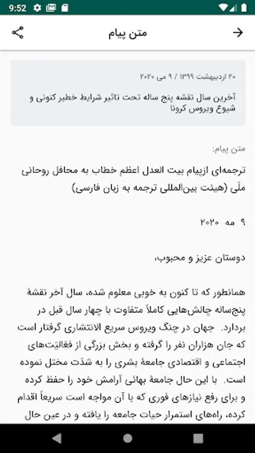 Since one of the duties of the Supreme House of Justice is to guide the Bah به' .s, it occasionally issues public messages to the Bah به' درs throughout the world, such as those on the occasion of Eid al-Adha. In addition to these public messages, messages are issued to Baha'is in a specific country or region if necessary - such as what you see on this program. These include messages addressed to the Baha'is of Iran.
