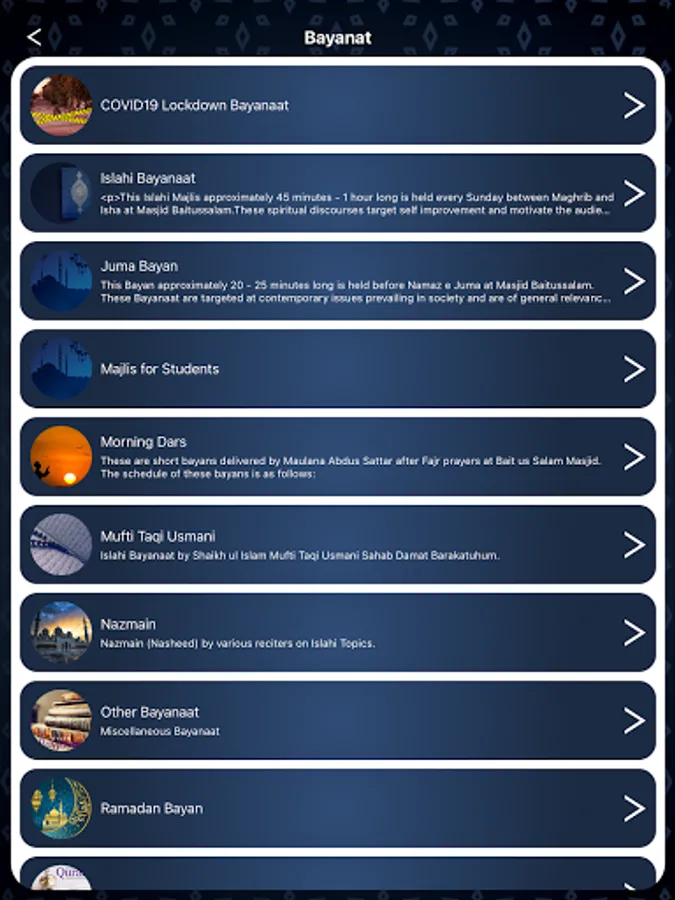 Users will have access to all the recorded bayanaat of famous scholars and all the special bayanaat that are given at Bait-us-Salam.