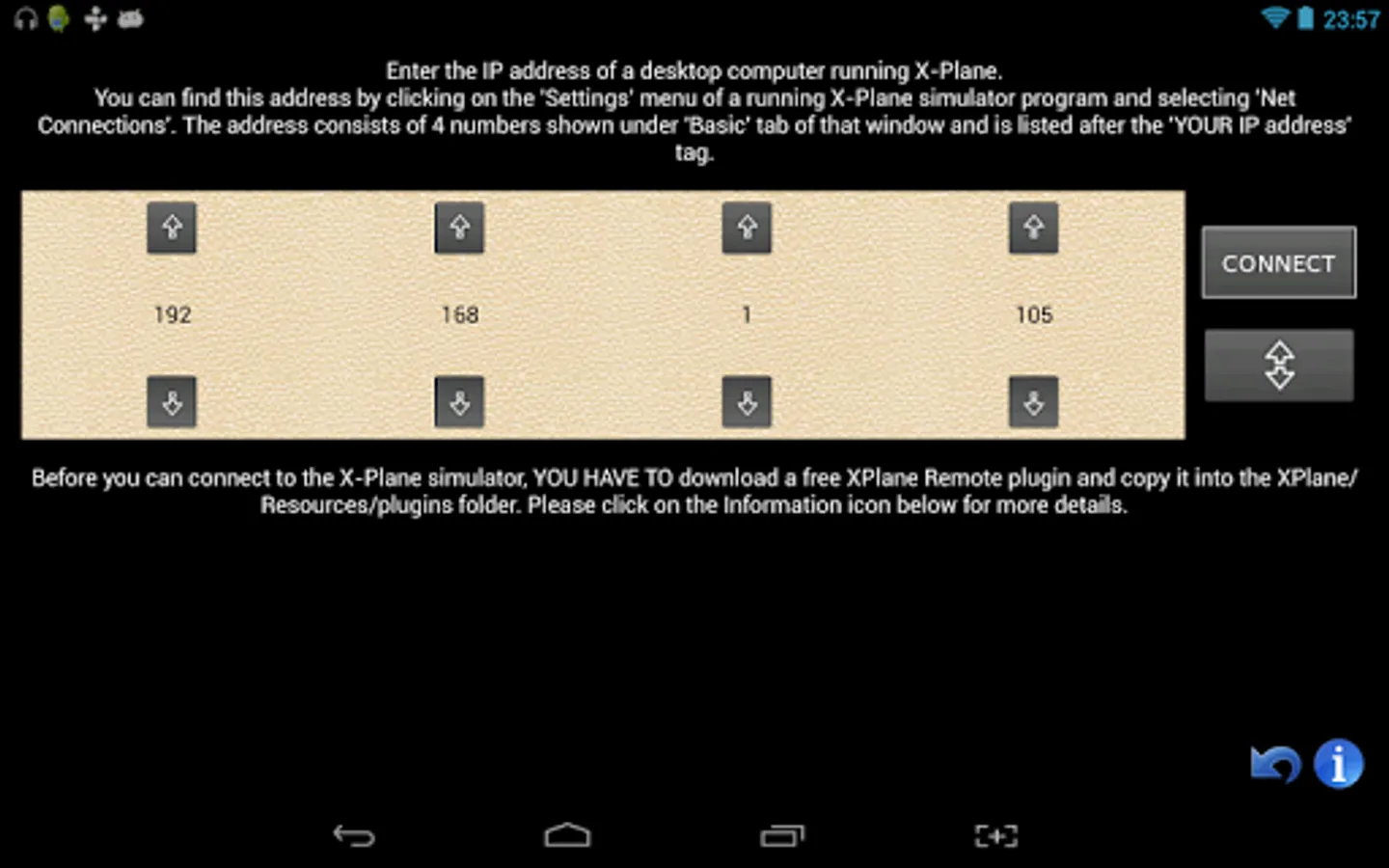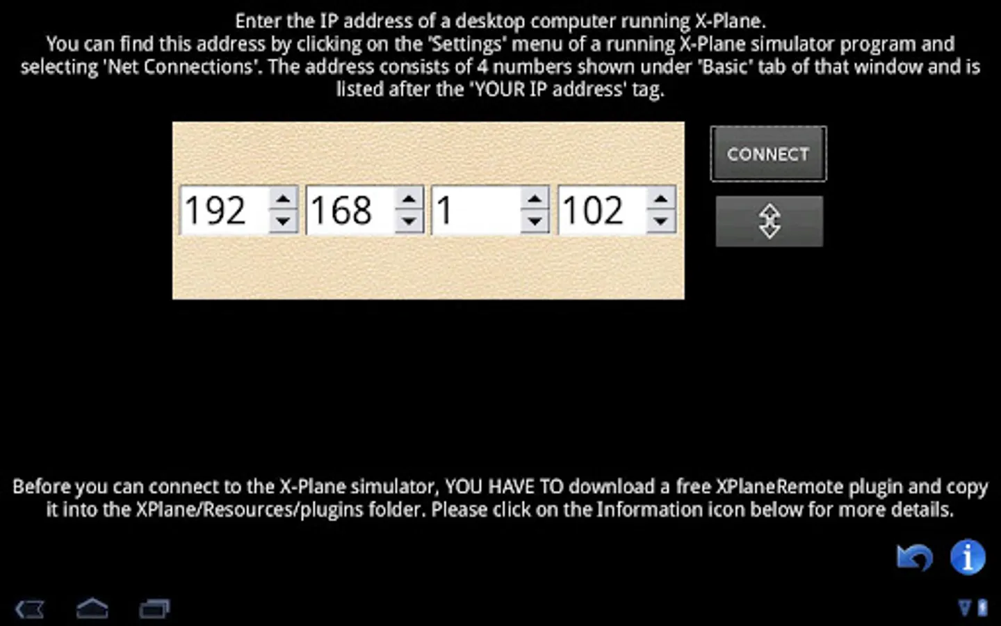 To use this application, your device needs to be connected to the same network as the host computer, which most likely already is when you are playing an X-Plane.