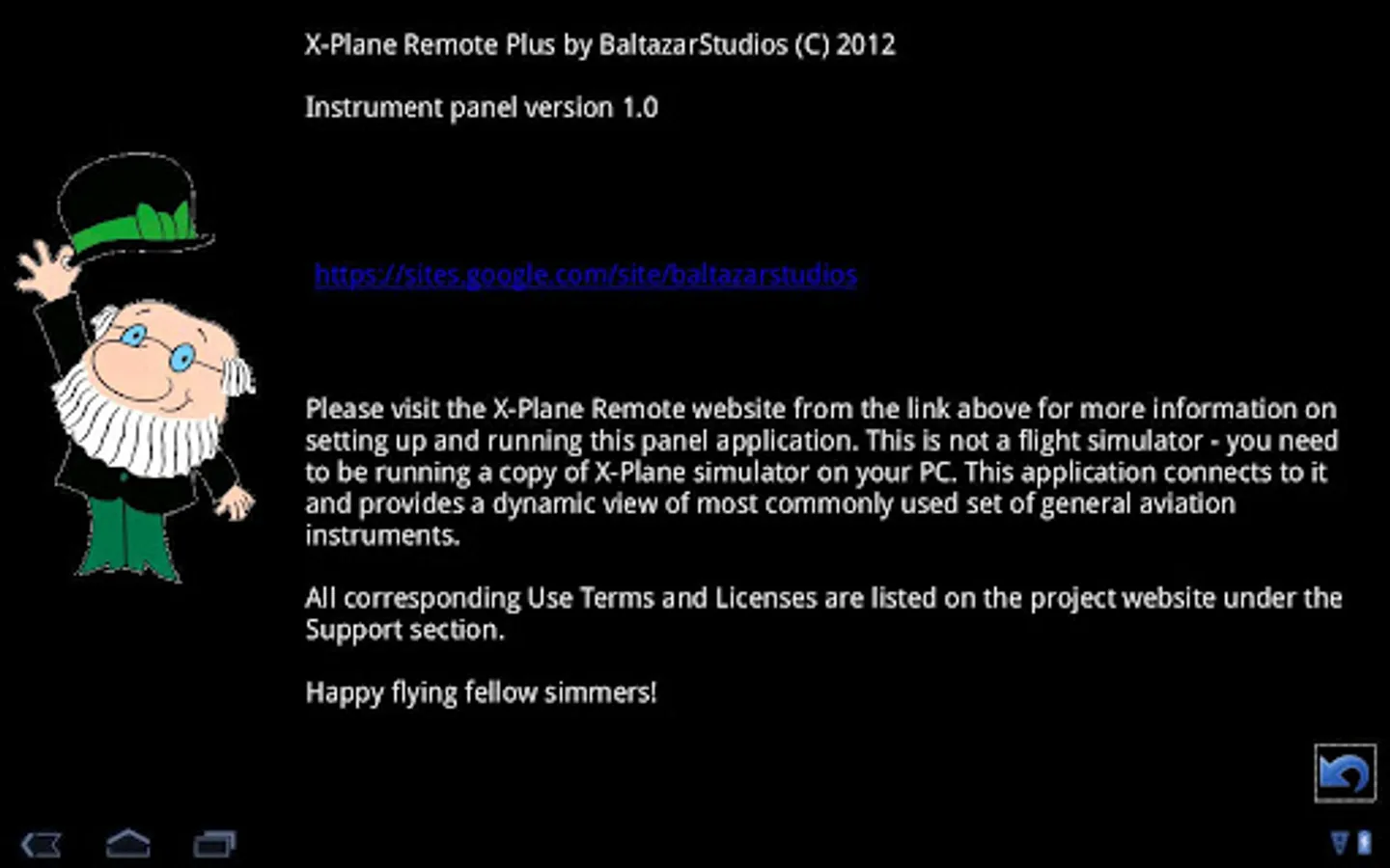 Flight Sim Remote Panel is an application that shows basic general aviation instrument set on your Android phone or a tablet. This is not a simulator - a copy of the X-Plane simulator should be running on your desktop or a laptop - this application connects to it from an Android device and displays the flight instruments, hence the "remote panel" in its name.