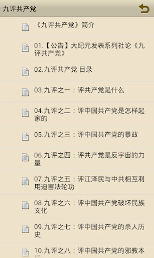 《九评共产党》简称《九评》,为《大纪元时报》系列评论性文章,主要是对共产主义和共产党(尤其是中国共产党)政治观及宇宙观的评价,以及其统治中国大陆期间的历史事件造成的影响。