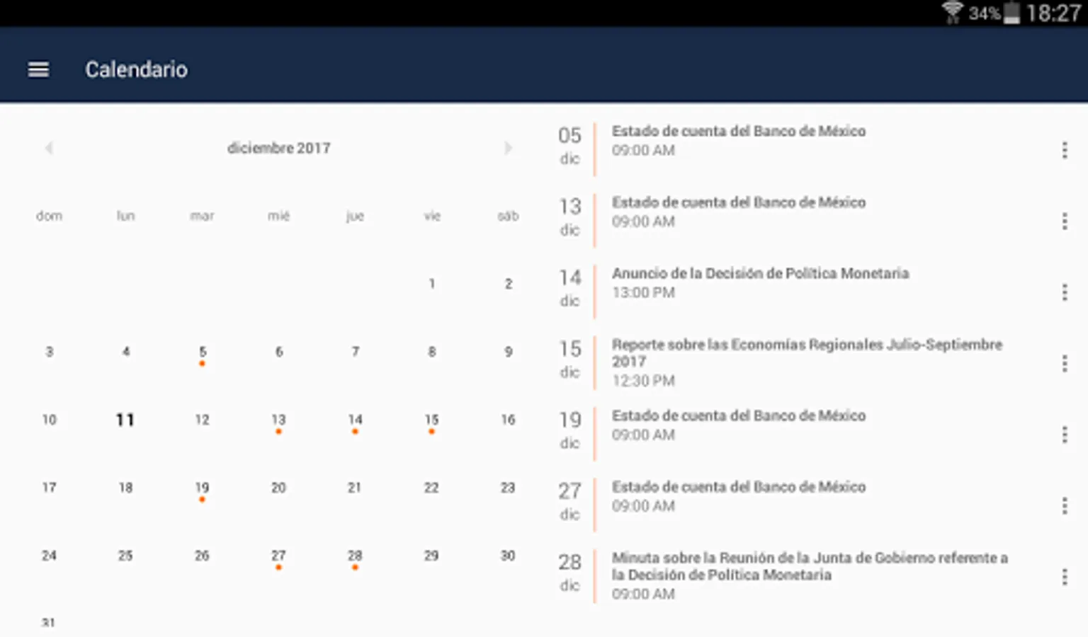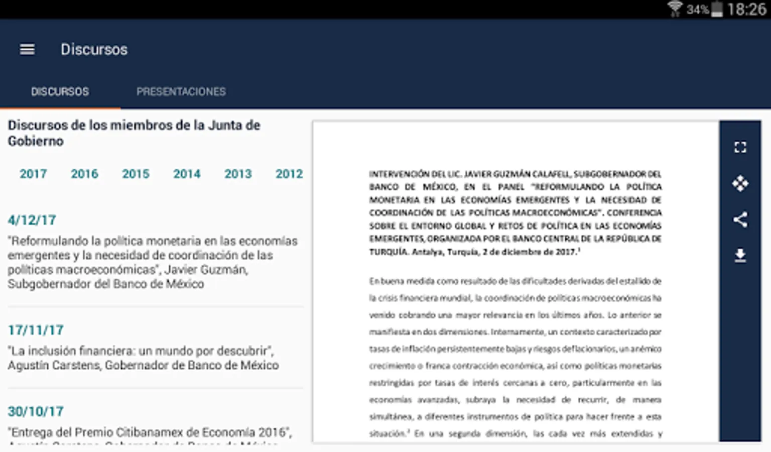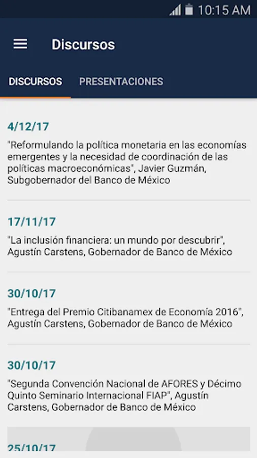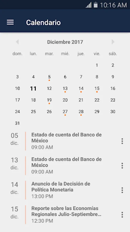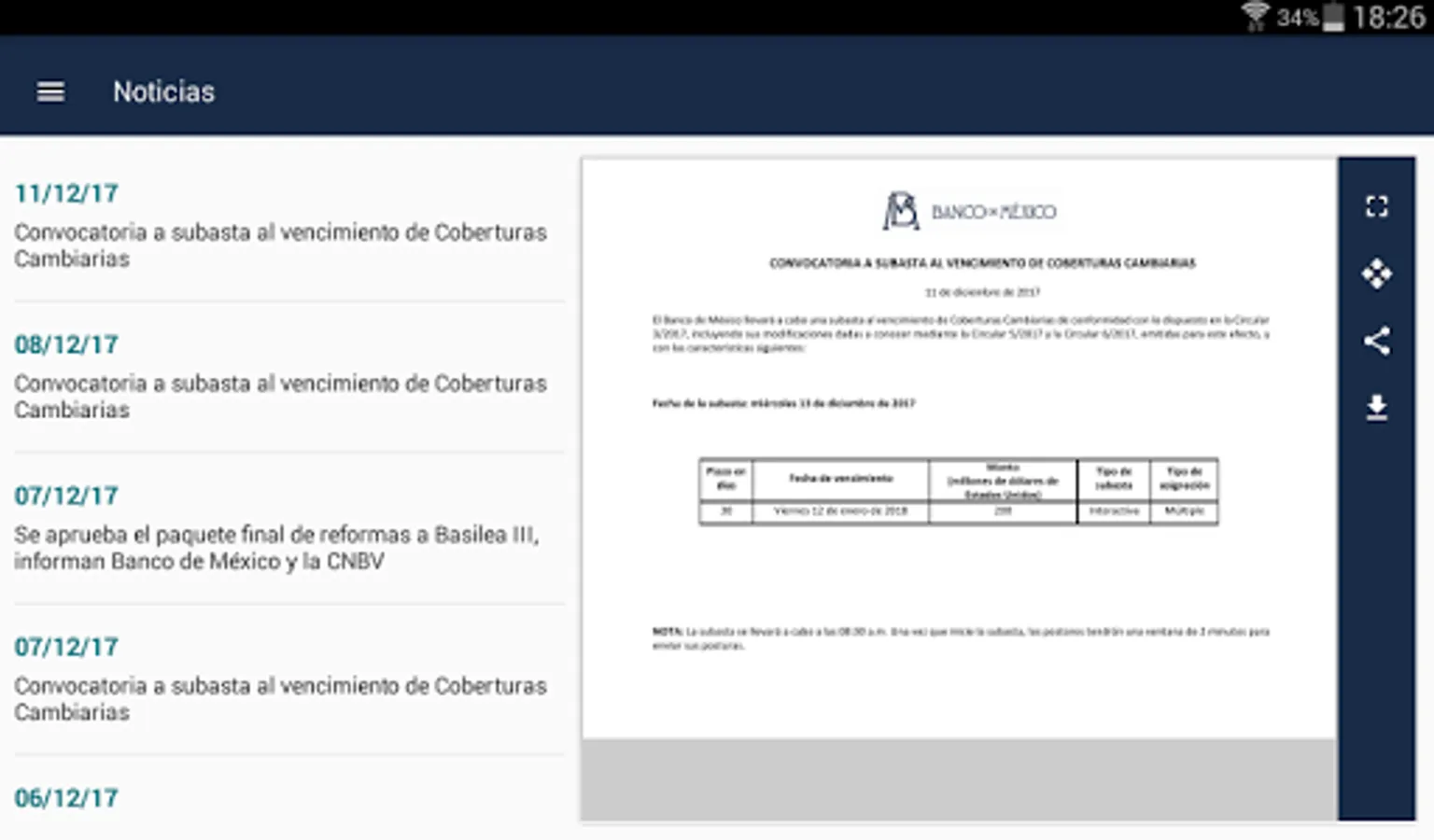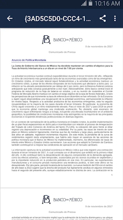 This application allows to see the main economic indicators, latest news and documents published by Banco de Mexico.