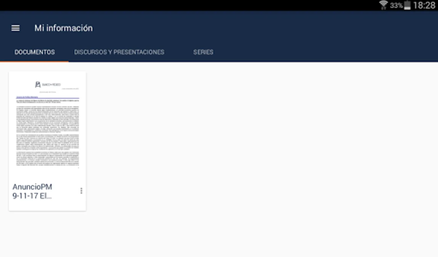 After entering the information the first time, you may consult even when no Internet connection have. Economic indicators are displayed using interactive graphs and tables with the latest data. It is possible to read documents in PDF format within the same application. And watch videos when available.