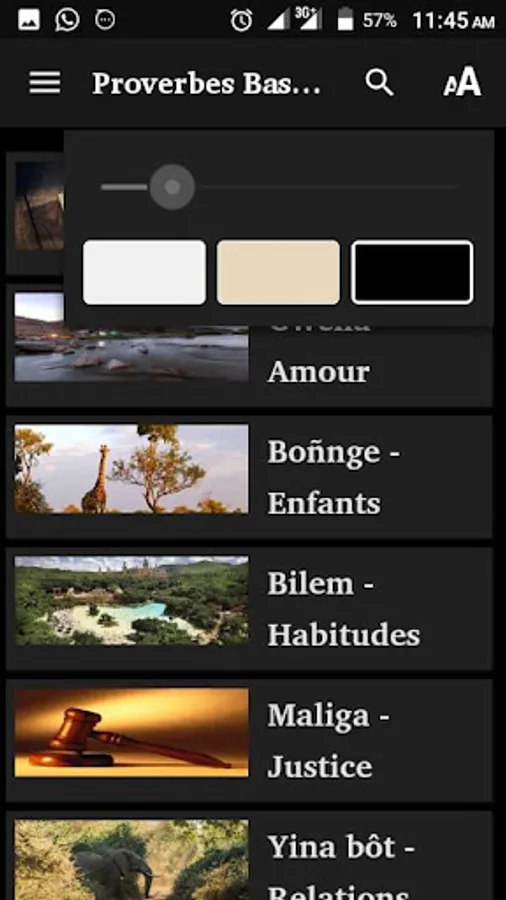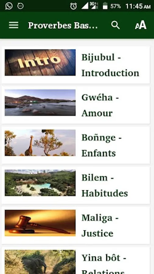 In this "Proverbes Bassa" app, proverbs are written in the Bassa language of Cameroon. We give a free translation or paraphrase in French, and finally we propose possible interpretations in French without pretending to be exhaustive.