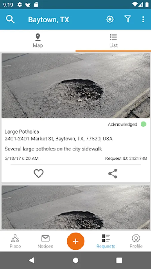 The Better Baytown app is your official connection to the City so you can easily report those potholes, damaged street signs, and other local problems that need attention. The app uses GPS to recognize your location and gives you a menu of common quality-of-life conditions to select from, and you can upload pictures or videos to accompany your request. Residents can track the status of reports they have submitted. The mobile app can also be used to quickly access the City’s magazine, utility billing payments, and fun things to do around Baytown.
